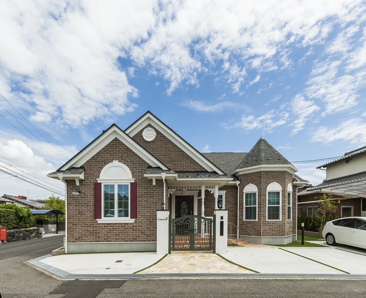 人気№1.2.3の平屋・レンガ・ガレージの住宅です。 まるでおとぎの国にありそうな“塔屋付き”の可愛い外観で、また、奥様専用のアトリエがあるこだわりの平屋となっております。 【平屋・施工面積:144.74m2(43.78坪)】