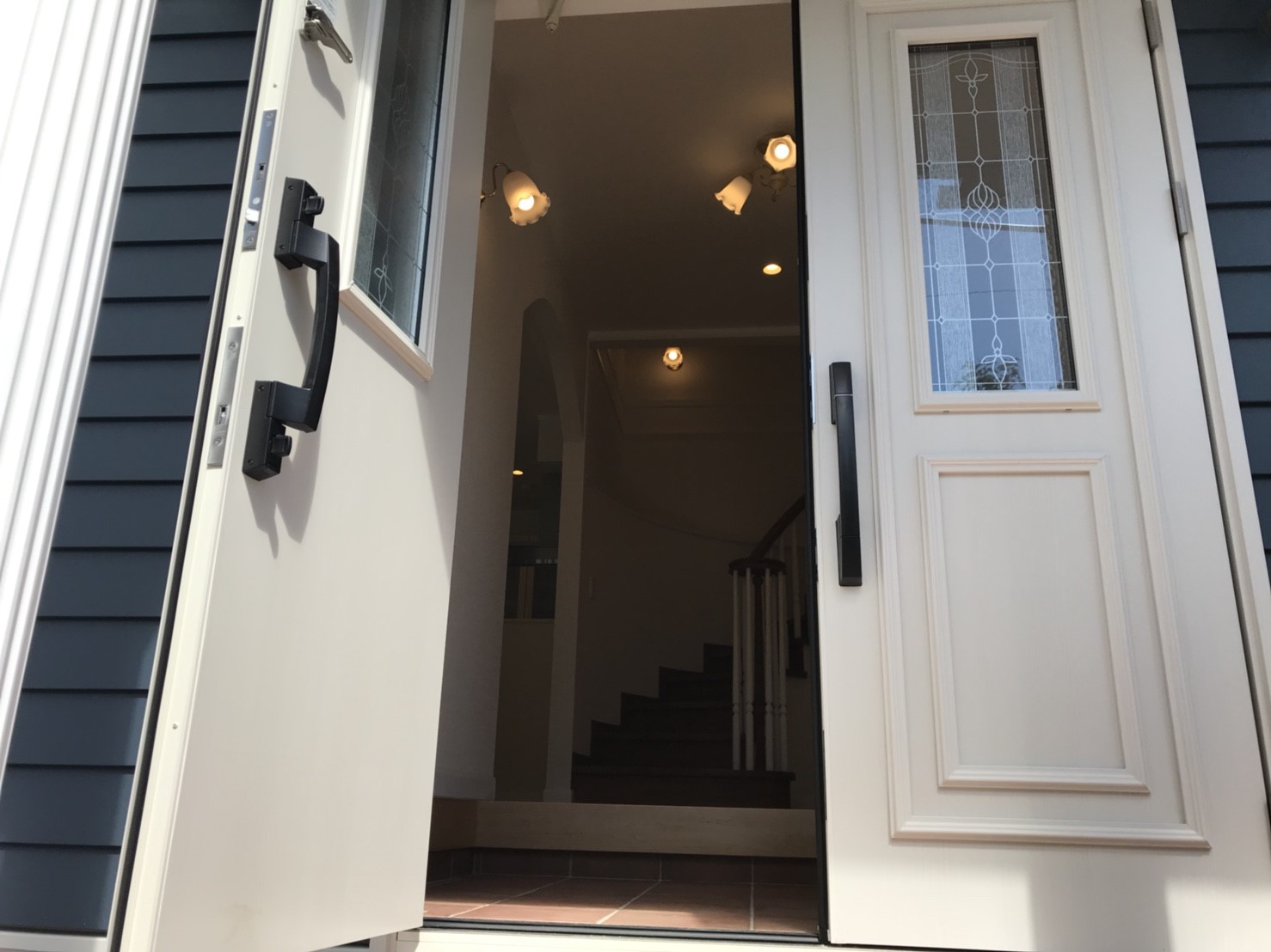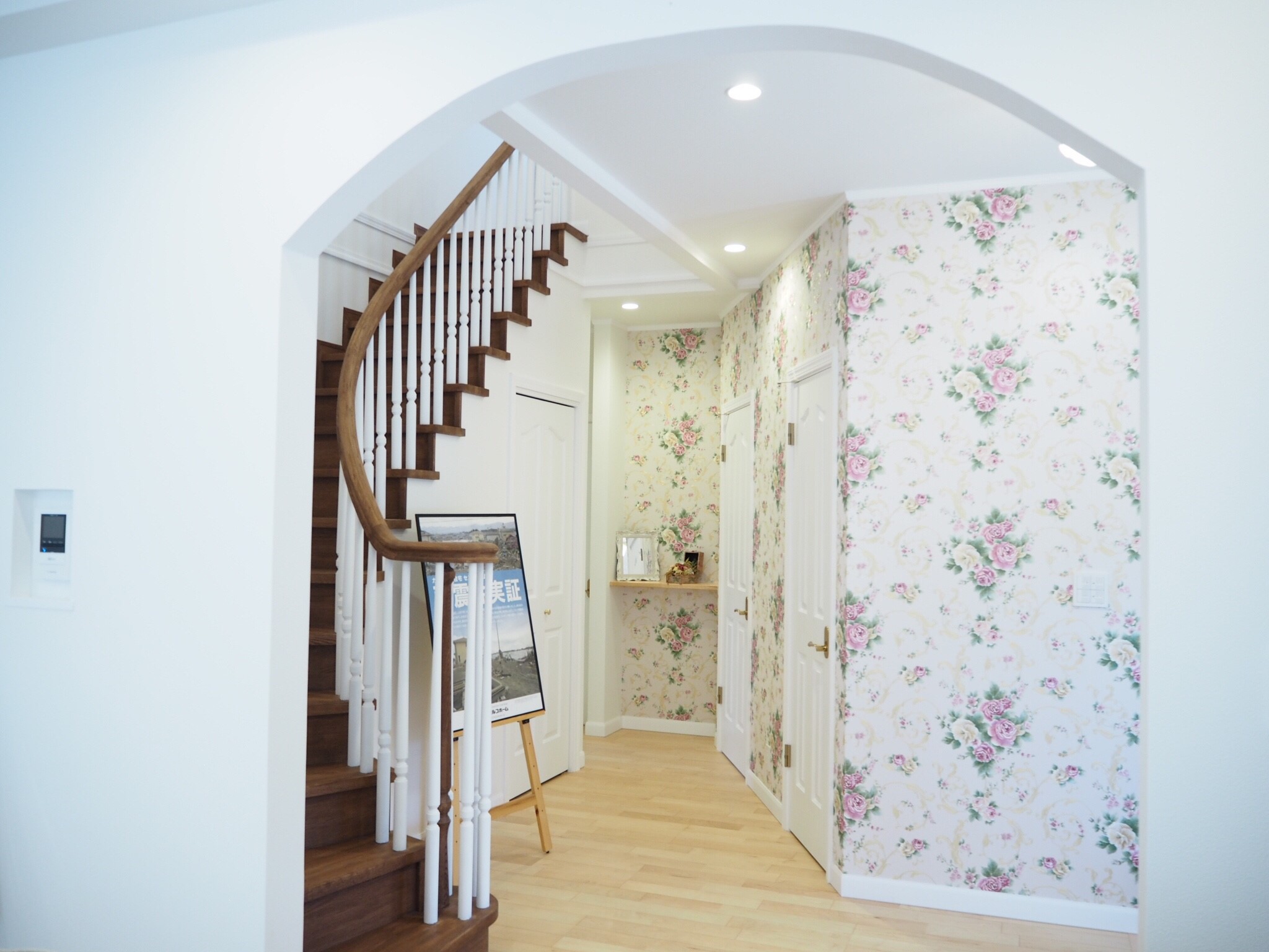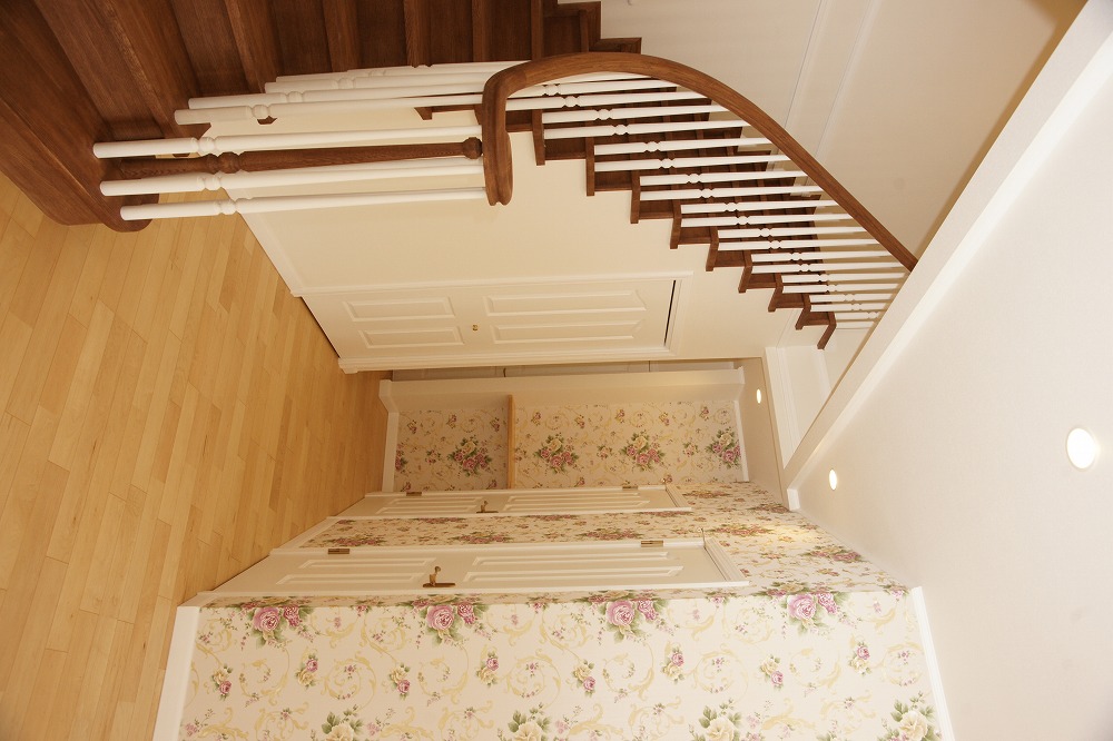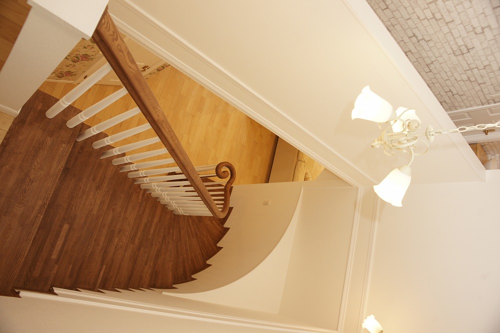 外壁はレンガとラップサイディングを使い分けたクイーンアンスタイル 大きな玄関扉を開けた正面には奥様憧れのサーキュラー階段があり、来訪者を圧倒します。 ご夫婦ともに遊び心に溢れており、隠し部屋があるなどいつまでも童心を忘れないスタイルが反映された邸宅です。 【クイーンアンスタイル 施工面積:152.30㎡(46.07坪)】
