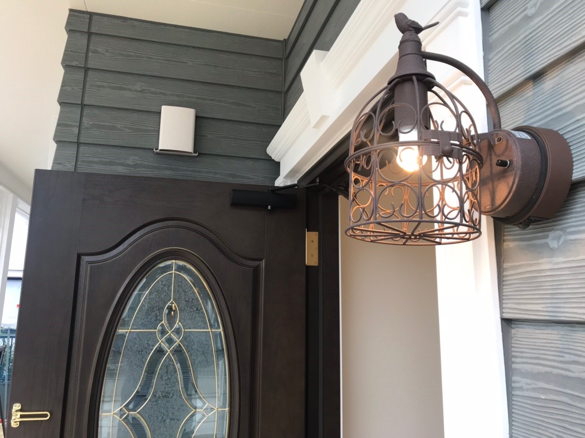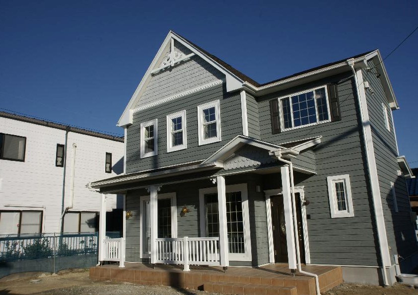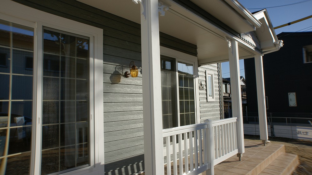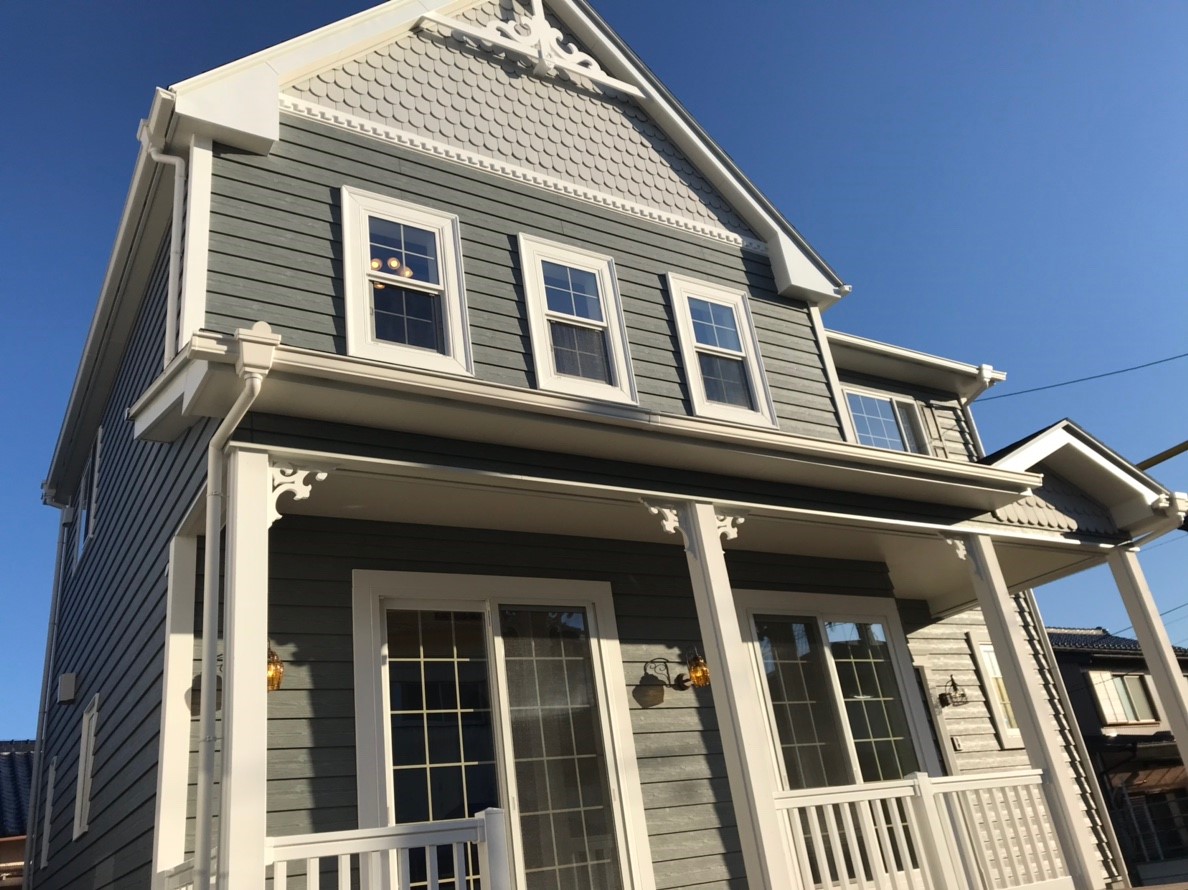 大きな三角形の屋根とカバードポーチが、建物の外観に余裕を持たせております。