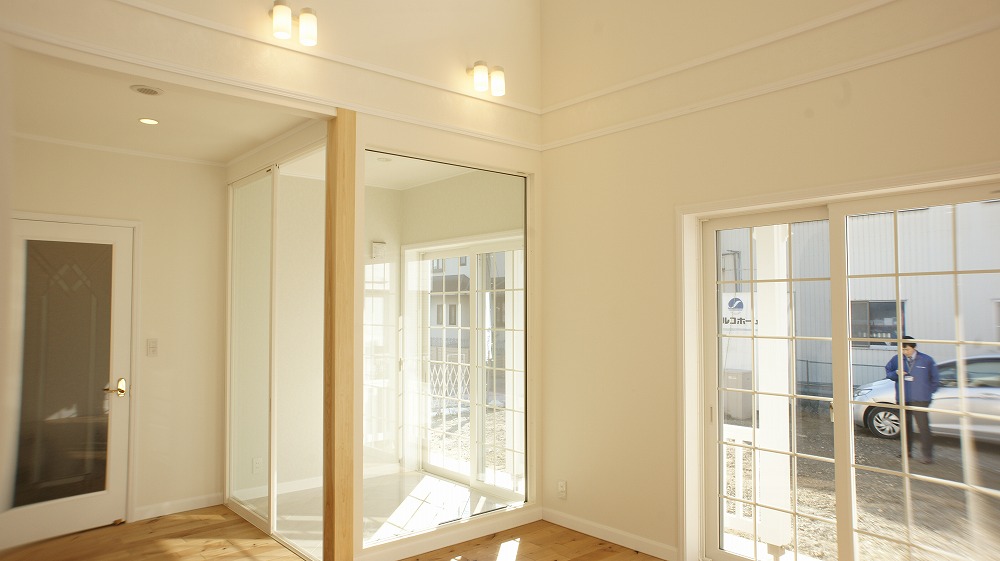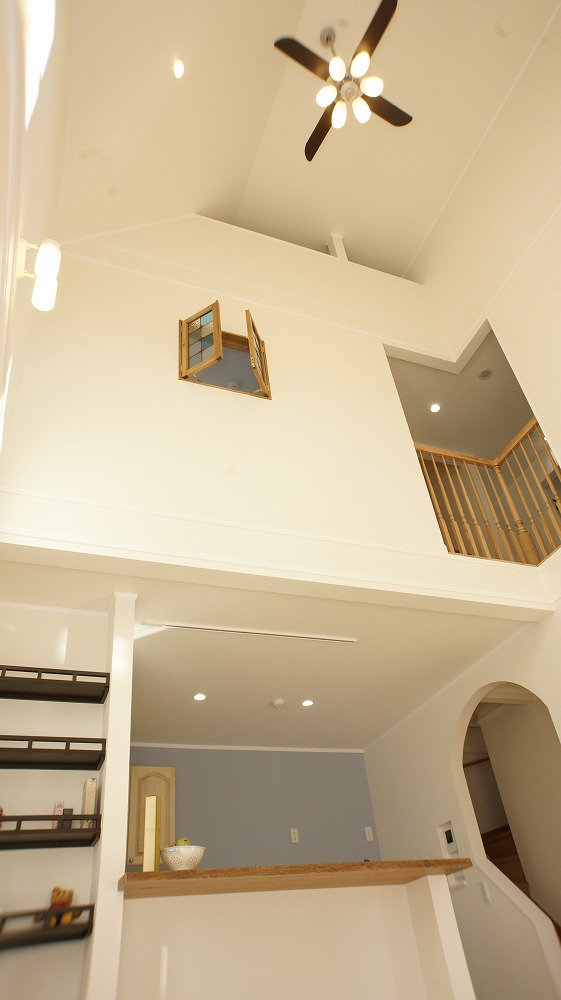 内部はリビングに目を引く高さの勾配天井と、ガラスのショーケースが部屋になった愛鳥の小部屋があり、